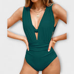 Affirme ton style sous le soleil avec ce maillot de bain sculptant au charme irrésistible. Son décolleté plongeant et sa taille subtilement marquée subliment ta silhouette tout en offrant un confort absolu. Idéal pour la plage, la piscine ou un resort chic, il combine sensualité, élégance et aisance.