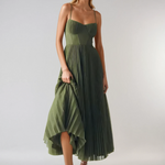 La jupe finement plissée se déplace avec une grâce légère à chaque pas, te conférant une aura féminine. Le haut ajusté avec un look corset et des bretelles délicates met en valeur ta silhouette de manière flatteuse, sans compromettre le confort.